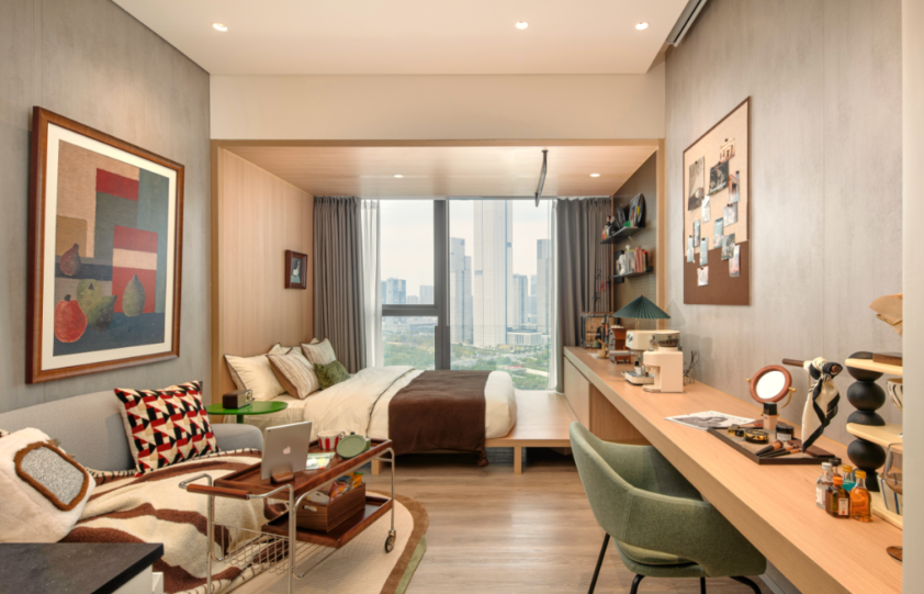 涵盖38到95平方米的5种户型,“亲橙寓”共计提供565间客房
