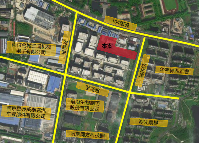 项目位于南京市江宁区江宁高新技术产业开发区104过道以南、瑞拱路以西,规划总用地面积17074.89平方米,地块用地性质 一类工业用地。该地块拟新建厂房高度23米,楼层为3层;综合楼高度22.2米,楼层为5层。并配套建设消防水池、门卫和机动车停车场及非机动车停车设施等,总建筑面积2.39万平方米。
