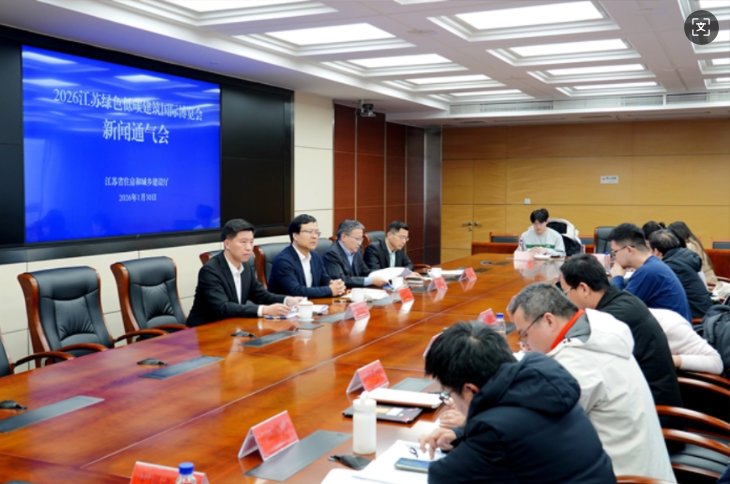 1月30日下午,江苏省住房和城乡建设厅召开2026江苏绿色低碳建筑国际博览会新闻通气会。副厅长路宏伟介绍有关工作情况。厅总工程师、绿色建筑与科技处负责同志参加发布会并回答记者提问。