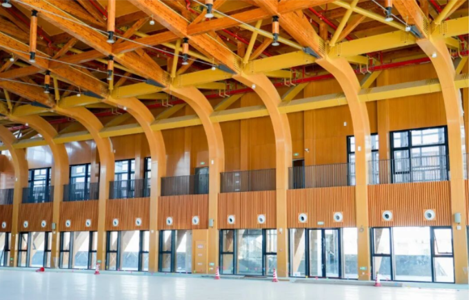 针对风雨操场两层高的大空间易形成温差梯度、人员主要聚集在低层的特点,项目采用分层空调送风形式。“这种设计夏季可节省冷量30%左右,既保证了使用舒适度,又有效降低了能耗。”项目负责人补充道。