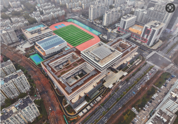 在节能降耗方面,项目铺设了1020平方米的屋面光伏玻璃,每年可发电17万千瓦时,这些电力主要用于风雨操场、地下车库和地面公共走道的照明,经测算,每年可减少约100吨碳排放。